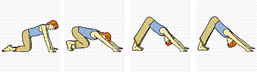 Je staat als een hond die zich uitrekt, met het hoofd omlaag